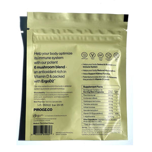 We employ a unique process that combines six specialty mushrooms (rich in ergothioneine) with patented UV light technology during the formulation process. This application significantly enhances vitamin D2 levels to over 1,000 times the natural amount.